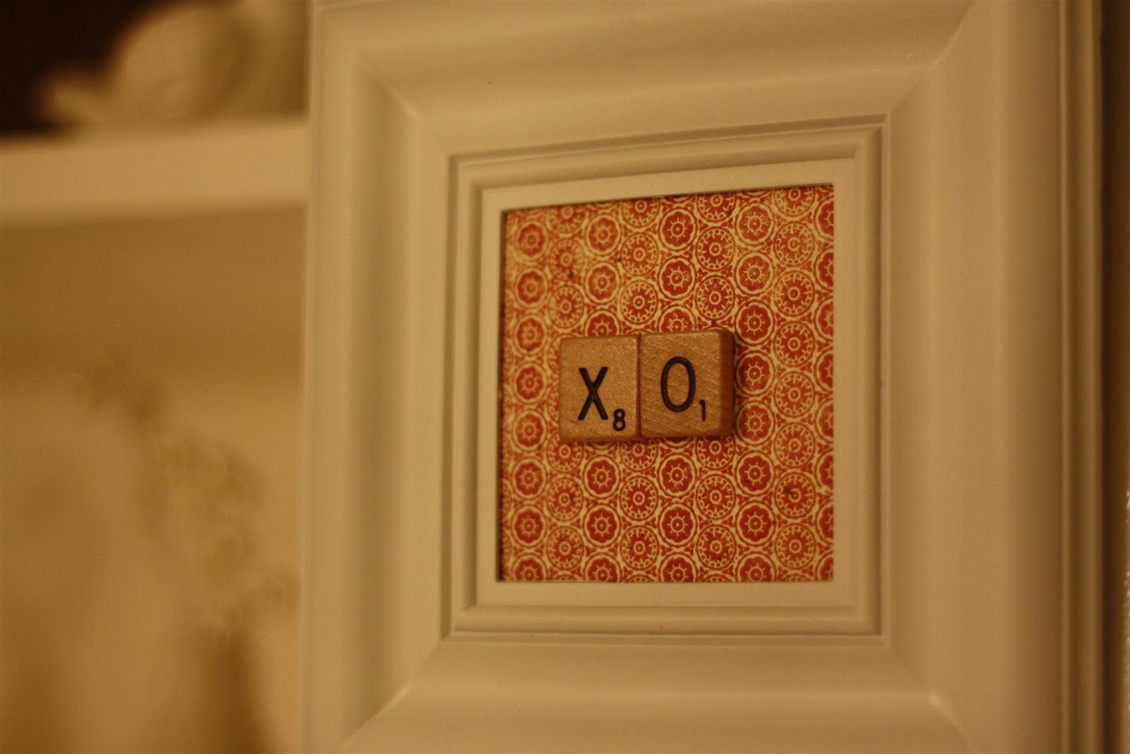 Once the paper was secured in the frames, I laid out my scrabble tiles and glued ‘em down. Just like that! Easy as pie. And SO adorable!